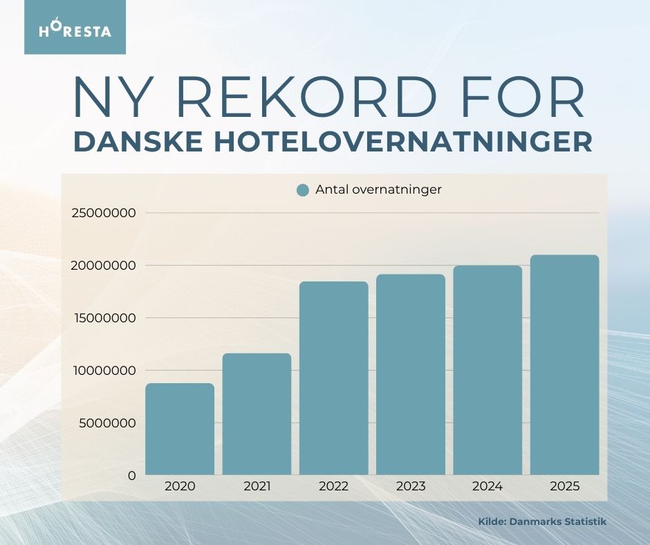 Det står klart, når man dykker ned i de dugfriske overnatningstal for december, som Danmarks Statistik har offentliggjort her til morgen. Med dem sættes der punktum for 2025, som det stærkeste år nogensinde for danske hoteller målt på antal overnatninger.